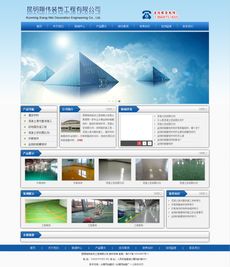 昆明翔偉裝飾工程有限公司是云南昆明一家專業(yè)從事金剛砂耐磨地坪、高檔環(huán)氧地坪漆、混凝土密封固化劑、舊地面改造工程、混凝土激光整體施工、灌漿材料耐磨地坪(金剛砂)、環(huán)氧樹脂地坪涂料,滲透劑 固化劑和新型建材研發(fā)、生產(chǎn)銷售和施工與一體的企業(yè),是目前國內(nèi)行業(yè)具有領先水平的生產(chǎn)制造企業(yè)。