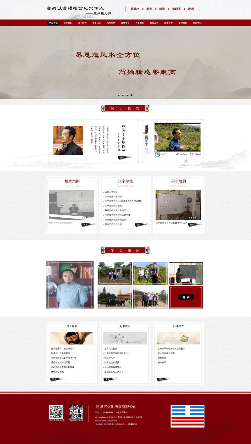 思道文化傳播有限公司是一家從事傳統(tǒng)易經(jīng)國(guó)學(xué)培訓(xùn)及民俗風(fēng)情服務(wù)的機(jī)構(gòu)?!兑捉?jīng)》作為 群經(jīng)之首,中華文化的源頭 ,在文明高度發(fā)達(dá)的今天,正在 全世界范圍內(nèi)得到人們的重視 ,并把它應(yīng)用到社會(huì) 、企業(yè)、單 位以及個(gè)人,以 達(dá)人天合一 、和諧 發(fā)展。