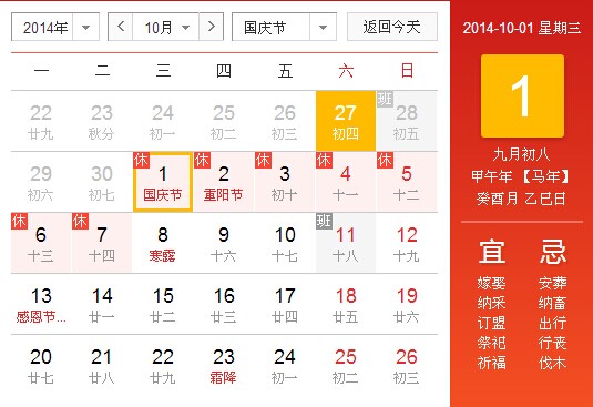 2014年國慶節(jié)放假日期安排通知