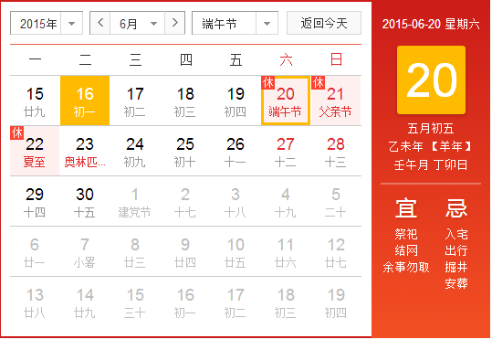 根據(jù)《國務院辦公廳關(guān)于2015年端午節(jié)放假安排的通知》,現(xiàn)將2015年端午節(jié)放假日期安排通知如下: