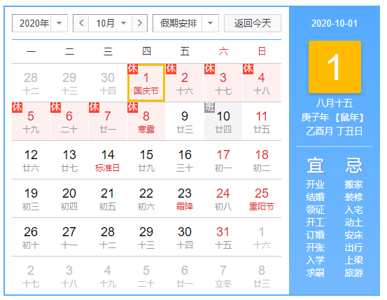 根據(jù)國(guó)務(wù)院辦公廳通知精神,2020年國(guó)慶節(jié)、中秋節(jié)放假安排如下: